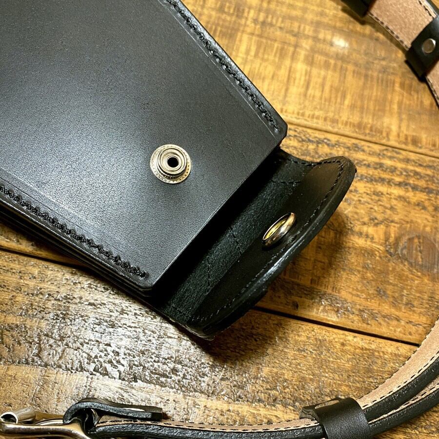 ベジタブルタンニンなめしのブラックレザーを使用。