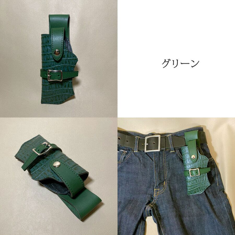 5色2タイプ クロコ ガンホルダー型 スマホケース 【Mサイズ】型押し革 スマートフォンケース スマホホルダー スマホポーチ ウエスト用 ベルト iPhone レザー 牛革