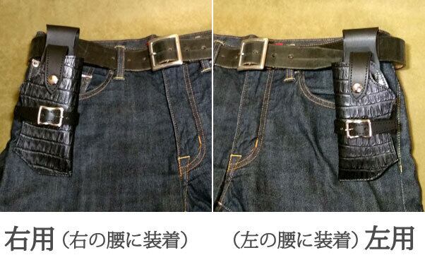 送料無料 クロコ ガンホルダー型 スマホケース 型押し革 スマートフォンケース スマホホルダー スマホポーチ ウエスト用 ベルト iPhone レザー 牛革 Mサイズ | アトリエYOU-オンラインストア
