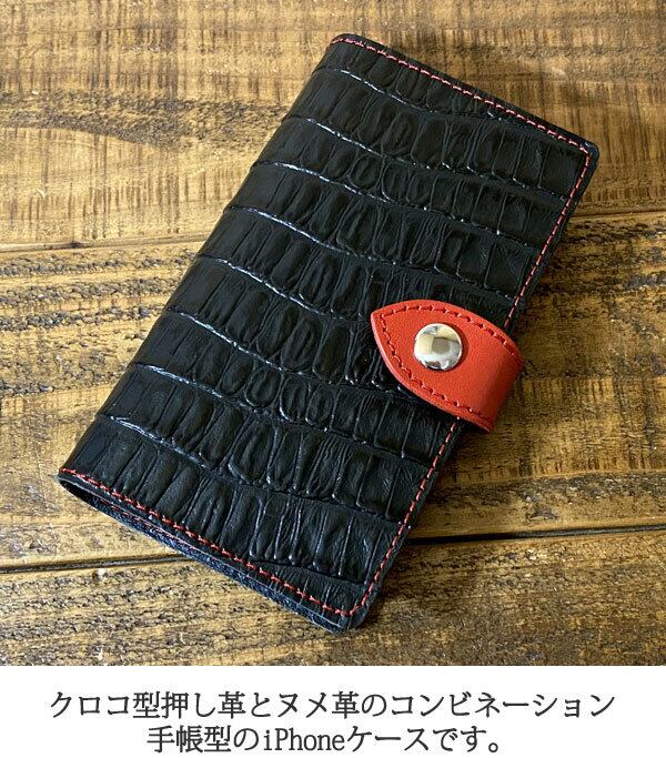 送料無料 クロコ 手帳型iPhoneケース 17 16 15 14 13 12 pro Max 11 X 8 7 6 6s plus SE 用 ハードケース カバー ヌメ革 レザー 牛革 本革 ハンドメイド スマホ ケース | アトリエYOU-オンラインストア